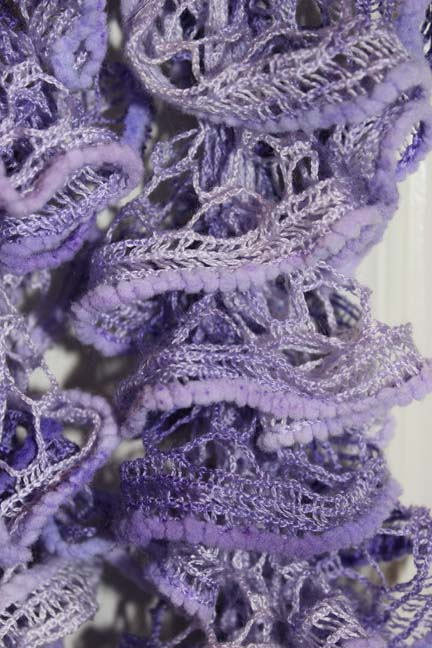 Scarfs are popular fashion accessories. With the new airy mesh yarns, you can create gorgeous spiral ruffled scarves which you have probably seen in stores and at craft shows. These scarfs can be pricey. But with only one skein of yarn and several hours, you can knit one yourself.![]()