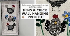 Learn about the charming Hens & Chicks quilt wall hanging! Perfect for chicken lovers, this easy project features black and white fabrics with vibrant accents.